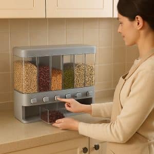 اگر آشپزخانه کوچکی دارید، خرید جا حبوباتی دیواری یک راهحل خلاقانه و هوشمندانه است. این مدلها روی دیوار نصب میشوند و فضای روی کابینت شما را آزاد میکنند. دسترسی به حبوبات با شیرهای تعبیهشده در پایین آنها بسیار آسان و جذاب است و جلوهای مانند فروشگاههای مدرن به آشپزخانه شما میدهد.