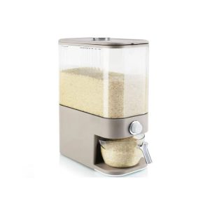 این ظرف با ظرفیت ۱۰ کیلویی، پاسخگوی نیاز خانواده‌ های کم‌ جمعیت و پر جمعیت است. این اندازه باعث می‌شود بتوانید حجم مناسبی از برنج را یکجا و کاملاً بهداشتی نگهداری کنید.