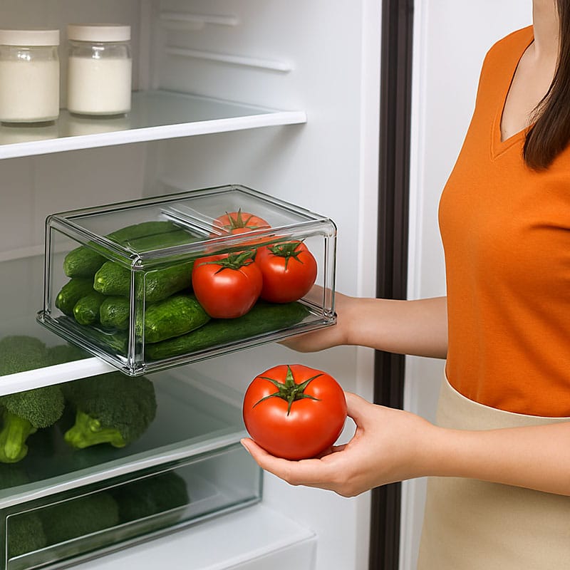 وقتی همه چیز سر جای خودش باشد، نهتنها یخچال ظاهر مرتبتری دارد، بلکه مواد غذایی هم در شرایط مناسبتری نگهداری میشوند. بهجای چیدن میوهها و صیفیجات بهصورت پراکنده، استفاده از یک باکس بزرگ و مخصوص به حفظ تازگی، کاهش هدررفت و افزایش طول عمر آنها کمک زیادی میکند.