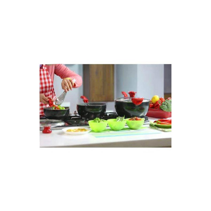 • ابعاد: تابه ی وک تک دسته سایز ۲۶ با دیواره 9 سانتی متر تابه ی وک تک دسته سایز ۲۲ با دیواره 8 سانتی متر تابه ی وک تک دسته سایز ۱۸ با دیواره 7 سانتی متر